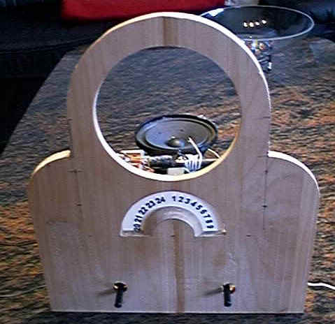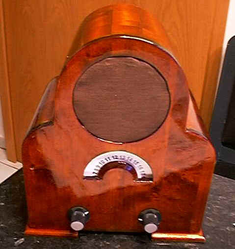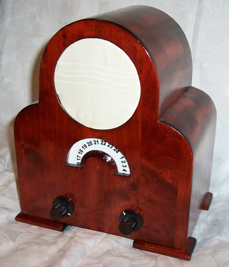 Schellack - Mahagoni werden, mit Rundskala und eingebautem Lautsprecher.