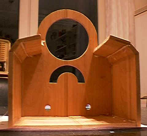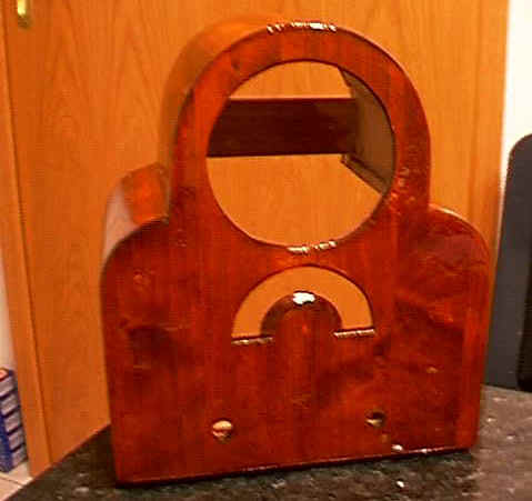 Hier nun das fertig gebeizte Gehäuse, Mahagoni - hell, muss hier aber noch