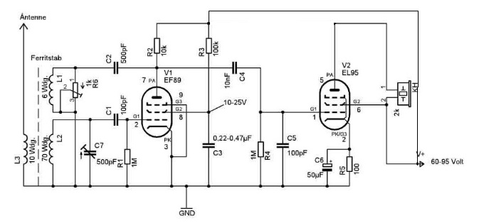 ausdrucken. Dieser Empfänger wird mit 6 Volt Heizspannung und 48 Volt