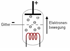 Eine einfache Röhre besteht aus Anode, Kathode und einem Gitter.