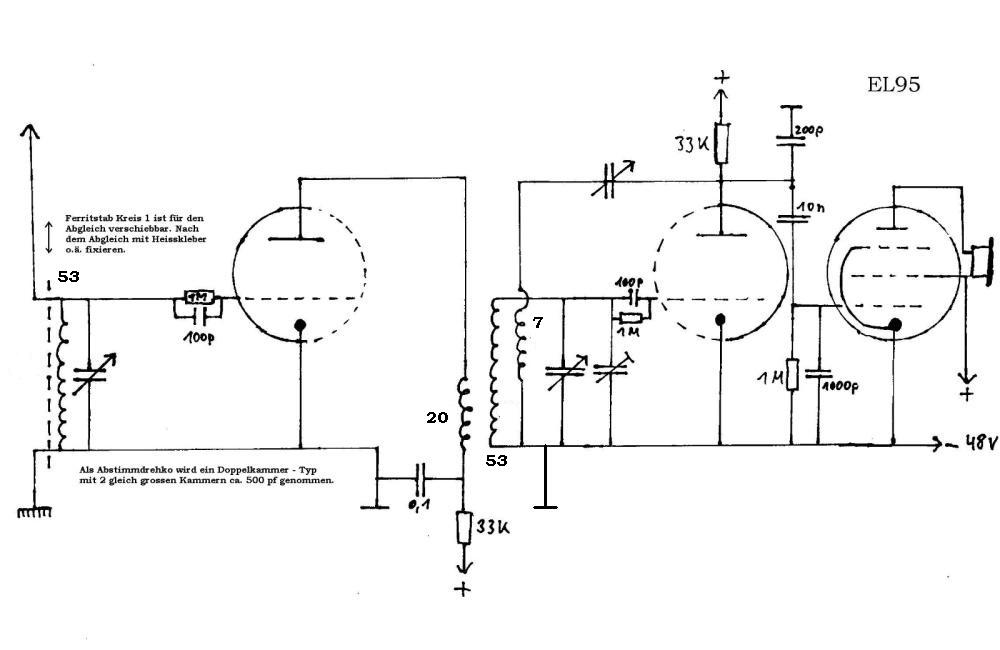 - Der 1000pf Kondensator am Gitter der EL95 dient der Ableitung