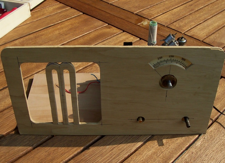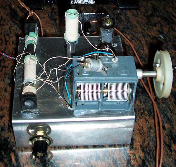Hier ist die Achse des Drehkondensators bereits nach vorne gedreht, ich weiss